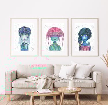 Chaque collection est pensée comme un trésor rare : une seule aquarelle originale par illustration, et des tirages d’art produits en quantité limitée